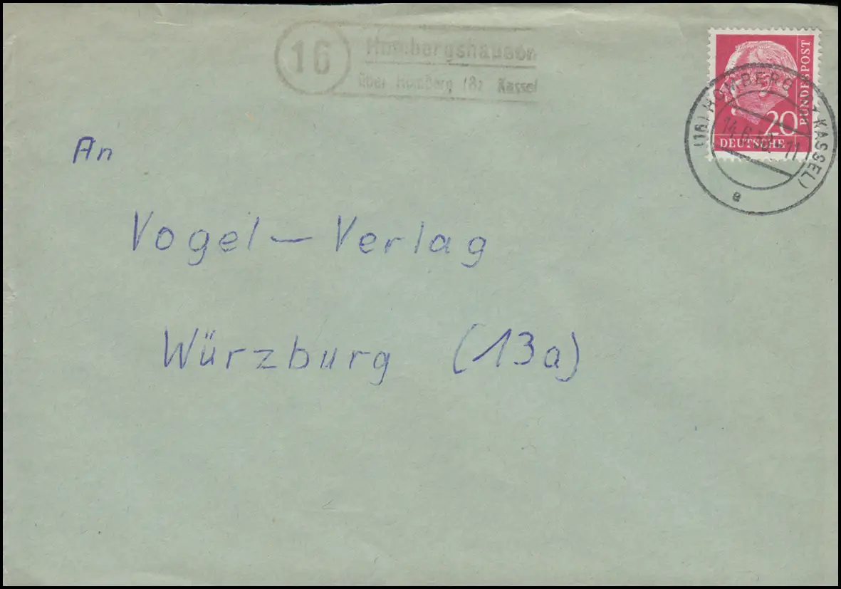 Landpost-Stempel Hombergshausen über HOMBERG (BZ. KASSEL) 14.6.1958 auf Brief