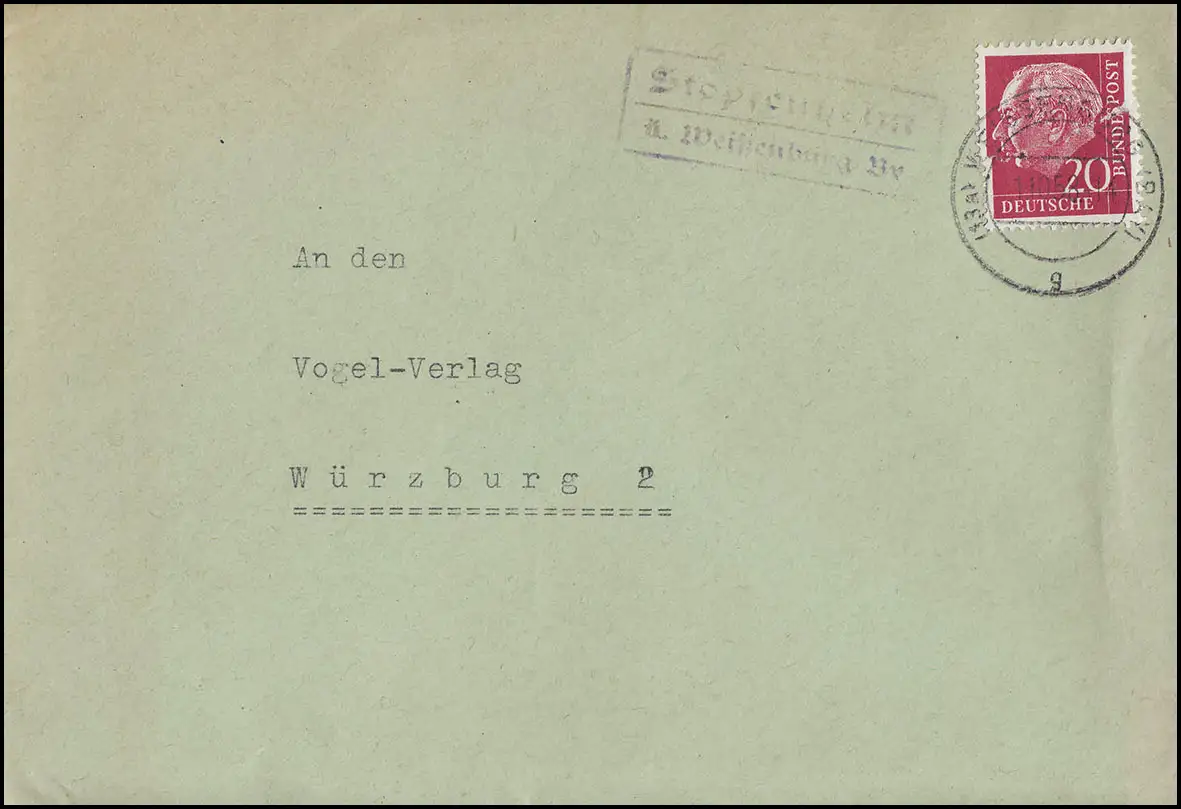 an den Vogel-Verlag in Würzburg, Frankatur defekt
