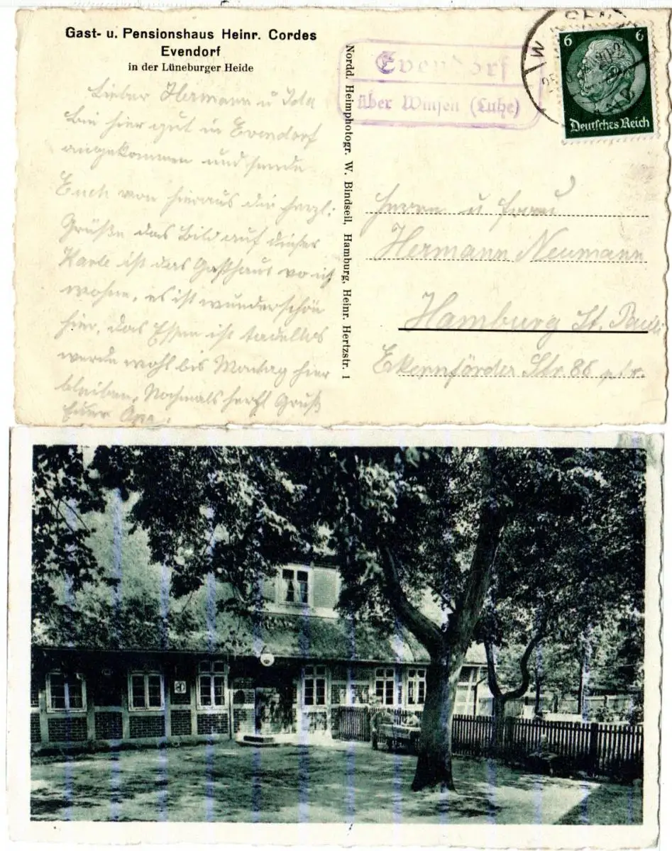 Landpost Stpl. EVENDORF über Winsen (Luhe) auf sw-AK m. Gasthaus H. Cordes