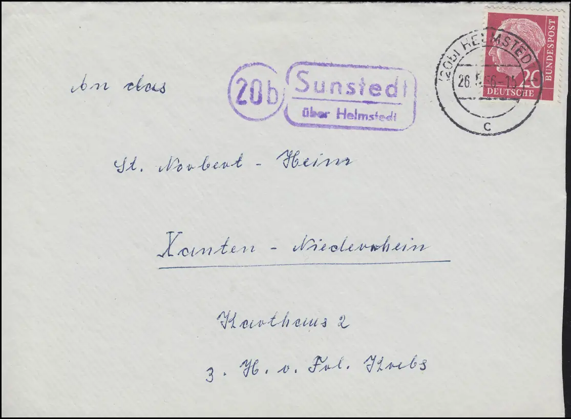Landpost Sunstedt über HELMSTEDT 26.5.56 auf Briefvorderseite