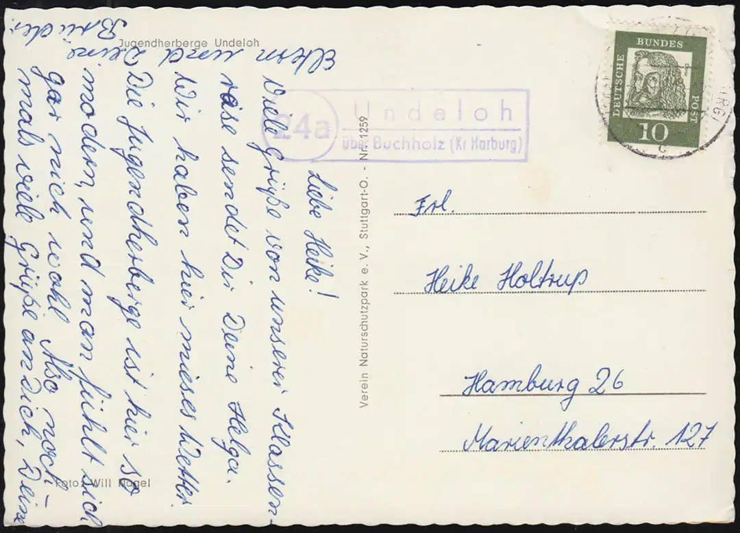 Landpost Undeloh über BUCHHOLZ (Kr HARBURG) 8.9.1961, AK Jugendherberge Undeloh