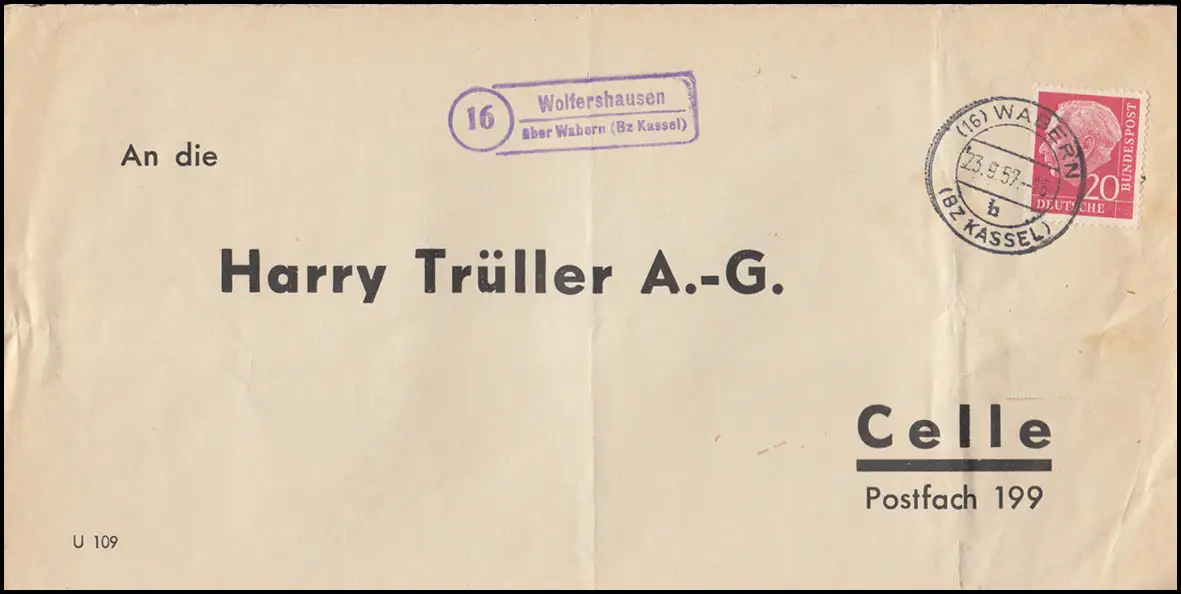 Landpost Wolfershausen über Wabern Bedarfserhaltung/senkrechter Briefbug