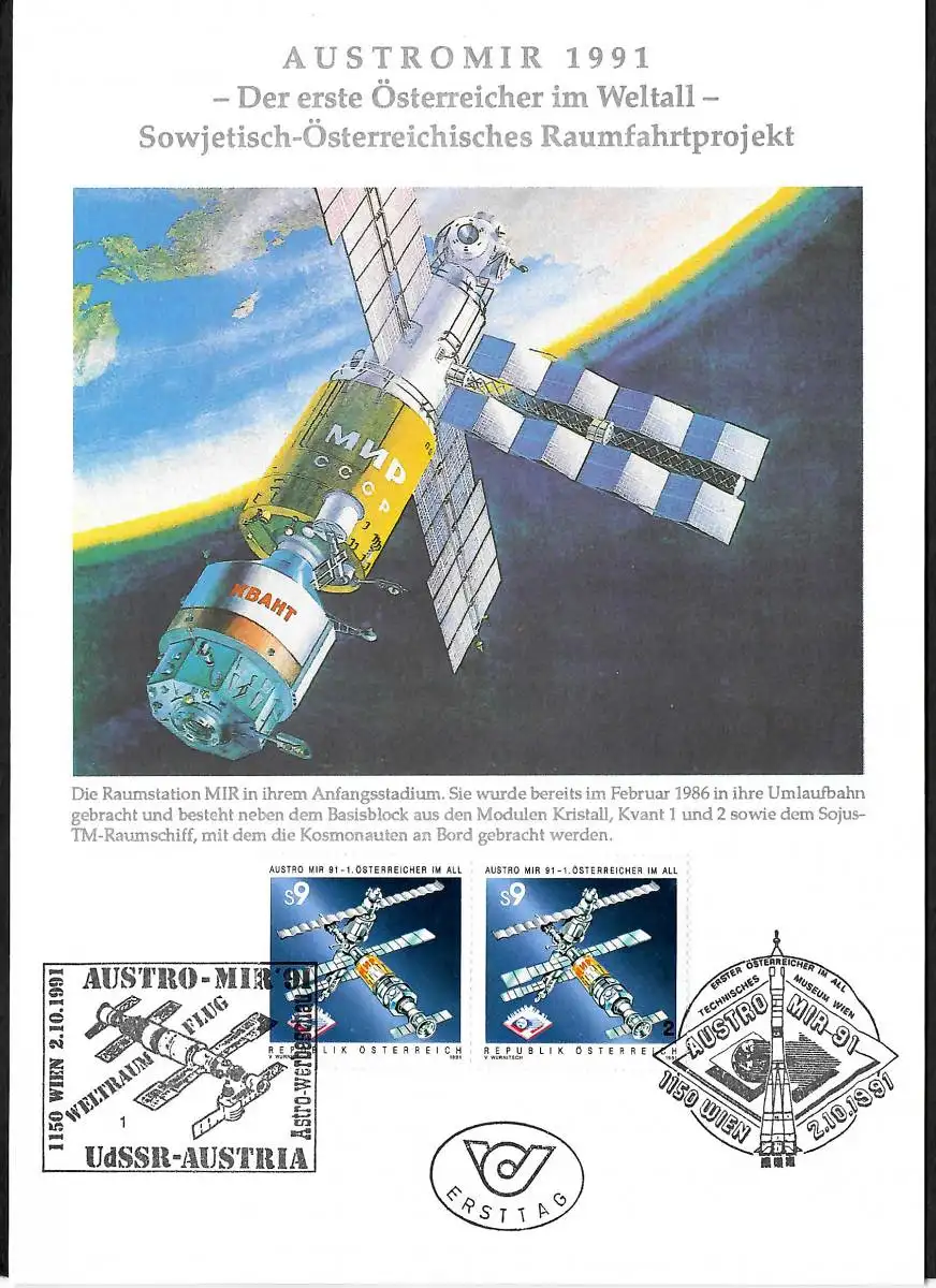 Landung: Austromier, MIR, 02.10.1991, 1. Österreicher im All Viehböck, Lothaller
