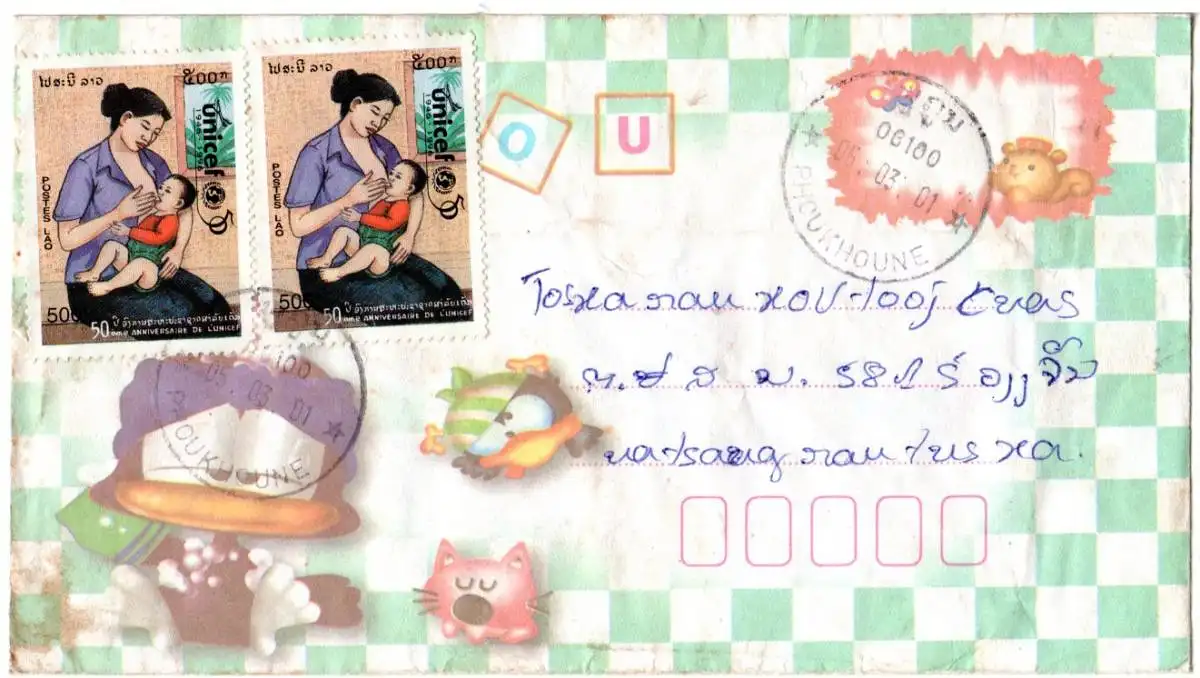 Laos, MeF 2x 500 K. UNICEF auf Inlands-Brief. Thematik Frauen