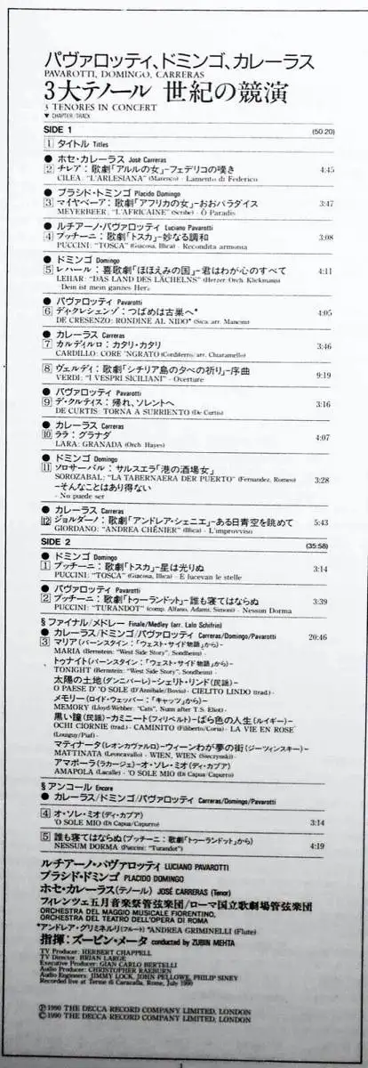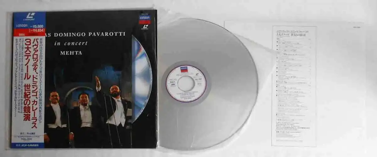 London Records, rare Laser Disc , Japan Pressung, 1990, mit Banderole, Beilage, POLL-1002, José Carreras - Luciano Pavarotti - Placido Domingo In Concert, Dirigent: Zubin Mehta