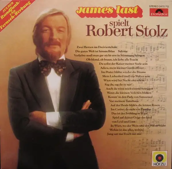 LP Album James Last - James Last Spielt Robert Stolz, Zustand Platte M- Hülle M-; Made in Germany 1977 Polydor 2475 712, Tracks Zwei Herzen Im Dreivierteltakt 1:54, Mein Liebeslied Muß Ein Walzer Sein 1:16, Wien Wird Bei Nacht Erst Schön 1:16, Verliebte Muß Man Gar Nicht Erst In Stimmung Bringen 1:32, Ob Blond, Ob Braun, Ich Liebe Alle Frau'n 1:16, Du Sollst Der Kaiser Meiner Seele Sein 1:20, Sag Du, Sag Du Zu Mir! 0:39, Auch Du Wirst Mich Einmal Betrügen 1:23, Adieu, Mein Kleiner Gardeoffizier 1:32, Das Ist Der Frühling In Wien 1:48, Spiel Auf Deiner Geige Das Lied Von Leid Und Lust 5:45, Jung San Ma! Fesch San Ma! 1:21, Im Casino, Da Steht Ein Piano 1:35, Wohin Ist Das Alles, Wohin? 1:23, Im Prater Blühn Wieder Die Bäume 1:33, In Wien, Wo Der Wein Und Der Walzer Blüht 1:22, Die Ganze Welt Ist Himmelblau 0:55, Wenn Die Kleinen Veilchen Blühen 0:52, Komm' In Den Park Von Sanssouci! 1:58, Salome 3:27, Vor Meinem Vaterhaus 1:27, Auf Der Heide Blüh'n Die Letzten Rosen 2:00