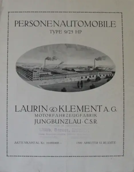 Laurin & Klement Type 9/25 HP Modellprogramm 1920 Automobilprospekt (3539)