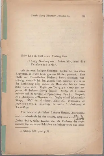 Lauth, (Franz Joseph): König Nechepsos, Petosiris, und die Triakontaeteris. - Bayerische Akademie der Wissenschaften, Sitzung der philos.-philol. Classe vom 5. Juni 1875.