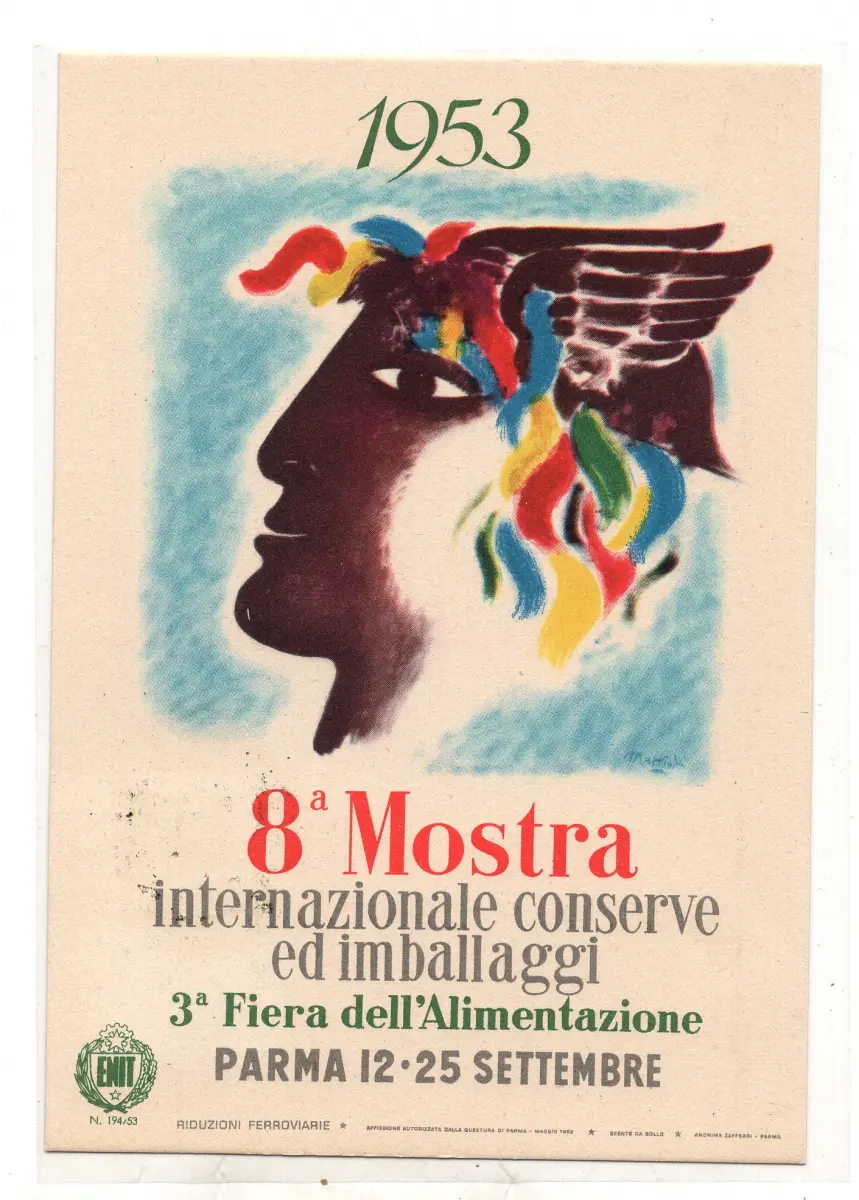 Postkarte - Lebensmittelmesse 8. Internationale Ausstellung Konserven und Verpackungen - Postkarte von C. Mattioli gebraucht mit Sonderstempel - nicht gereist, perfekt Cod. 3072/WEB