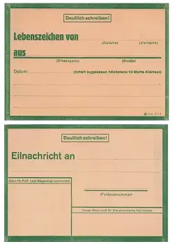 Lebenszeichen Karte Eilnachricht 2. Weltkrieg ungebraucht um 1944