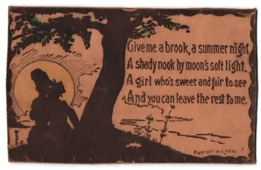 Leder-AK Ein junges Paar in inniger Umarmung unter einem Baum im Mondlicht