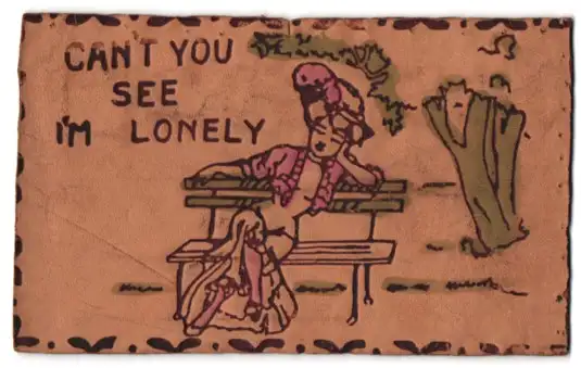 Leder-AK Einsame Frau in eleganter Sommergarderobe sitzt auf einer Bank