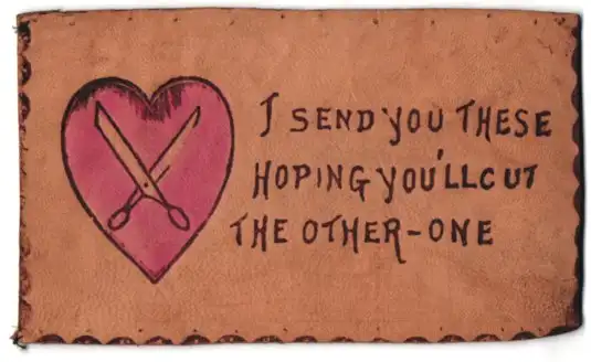 Leder-AK Herz mit einer Schere darin, romantischer Spruch