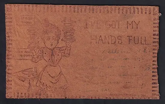 Leder-AK I`ve got my Hands full, Serviererin balanciert Geschirr