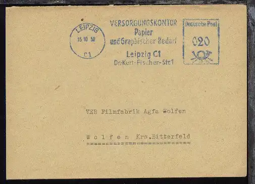 Leipzig AFS LEIPZIG C1 15.10.58 VERSORGUNGSKONTOR Papier und Graphischer Bedarf