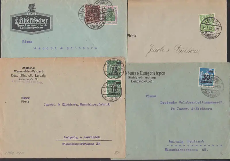 Leipzig-Lindenau, - Mockau, Maschinenfabrik Fikentscher, Werkmeister-Vrband 4 Infla-Briefe