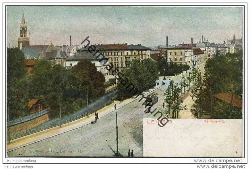 Leipzig - Rathausring - Verlag Trenkler & Co. Leipzig - rückseitig Klebepunkte (E6369) gel. 1903