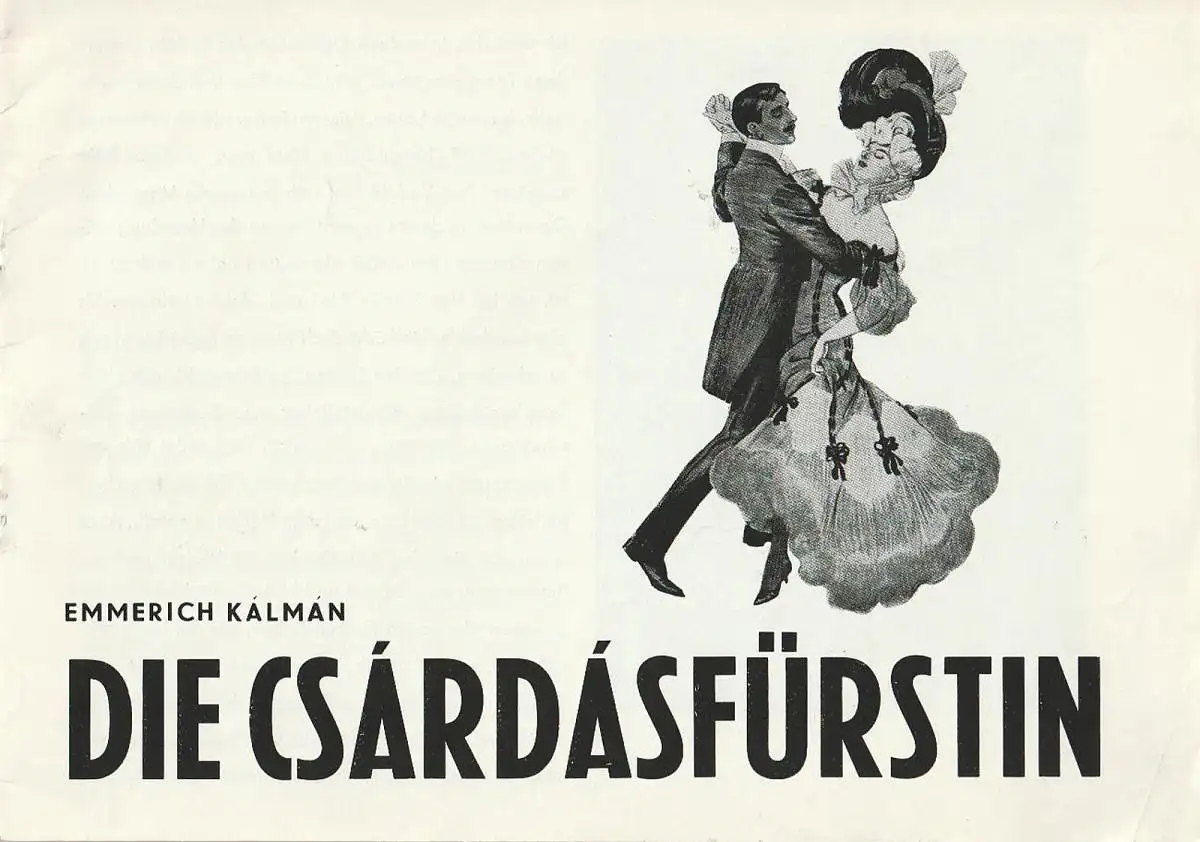 In neuer Inszenierung.Operette in drei Akten. Inszenierung: Erwin Leister. Musikalische Leitung: Roland Seiffarth. Bühne: Barbara Schiffner. Kostüme: Thussy Breuer / Christa Hahn. Choreographie: Wolfgang Baumann. Regieassistenz: Birgit von Gagern. Mitwirkende: Otto Stübler, Lisa Thomas-Muschau, Walter Reimsbach, Christel Guck, Christa Nowak, Werner Schraps, Karl Zugowski, u. a. - Theaterprogramm, Opernprogramm, Ballettprogramm, Musicalprogramm, Konzertprogramm, Theatermemorabilia, Programmhefte Sammlung, deutsche Theatergeschichte.
