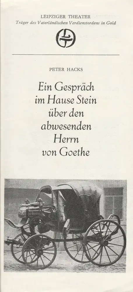 Leipziger Theater, Karl Kayser, Christoph Hamm, Walter Bankel, Corfried Baasch: Programmheft Peter Hacks EIN GESPRÄCH IM HAUSE STEIN ÜBER DEN ABWESENDEN HERRN VON GOETHE Premiere 21. August 1977 Gohliser Schlösschen Weisser Saal des Zoo.
