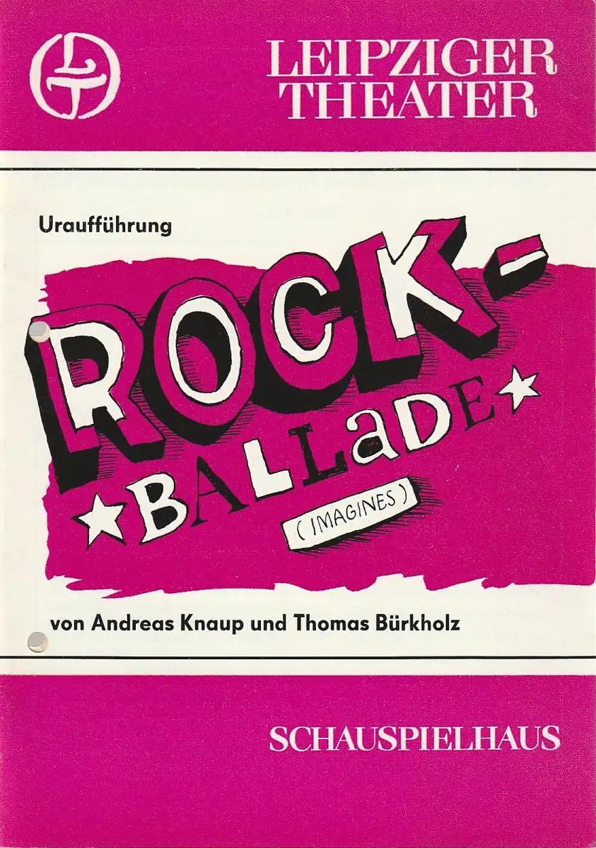 Leipziger Theater, Karl Kayser, Hans Michael Richter, Hanne Röpke, Volker Wendt: Programmheft Uraufführung Andreas Knaup / Thomas Bürkholz ROCKBALLADE 9. Januar 1983 Spielzeit 1982 / 83 Heft 13.