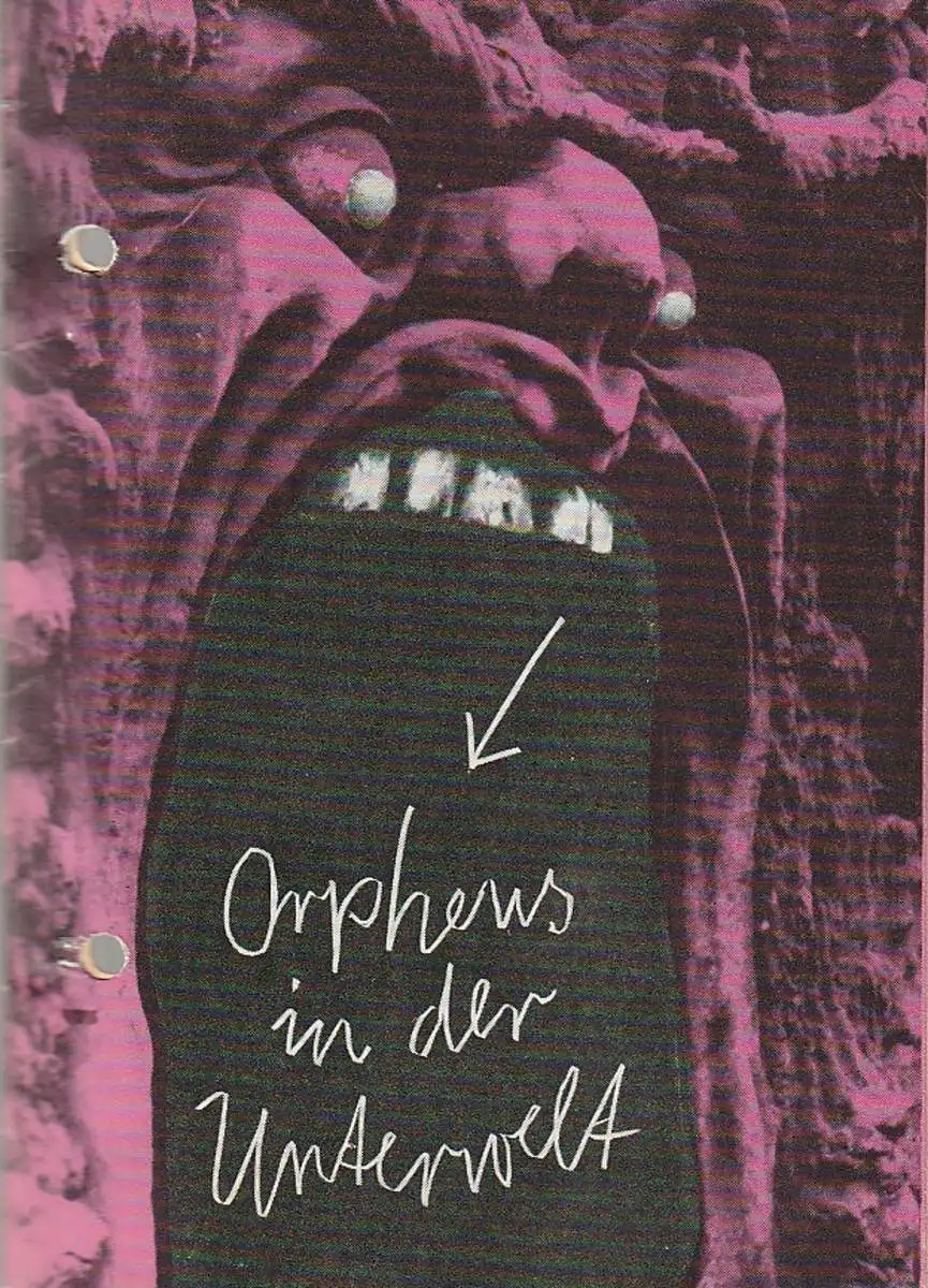 Opera bouffe in zwei Akten. In neuer Inszenierung. Musikalische Leitung: Roland Seiffarth. Inszenierung: Reinhard Schwalbe. Bühne: Bernd Leistner. Kostüme: Christa Hahn. Mitwirkende: Sylvia Arndt, Angelika Gräfe, Mario Dehne, Karl Zugowski, Hans-Gottfried Henkel, Ilha Kürten, Margarete Junghans, Barbara Helgert, Constanze Mädler, Bernd Baumann, u.a. - Theaterprogramm, Opernprogramm, Ballettprogramm, Musicalprogramm, Konzertprogramm, Theatermemorabilia, Programmhefte Sammlung, deutsche Theatergeschichte.