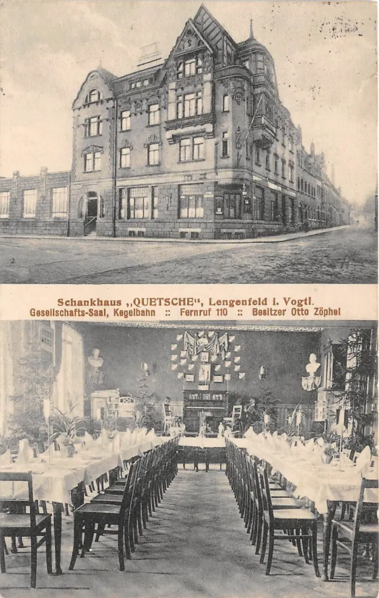 Lengenfeld Vogtland Schankhaus QUETSCHE Kegelbahn, Geseltschafts- Saal 1916