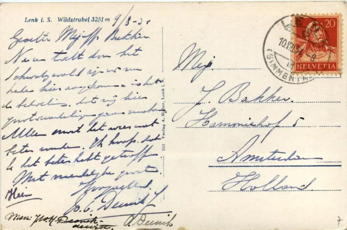 Danke. Alles Bestens. Können Sie mir allenfalls mitteilen, aus welchem Jahr die Postkarte stammt? Besten Dank.