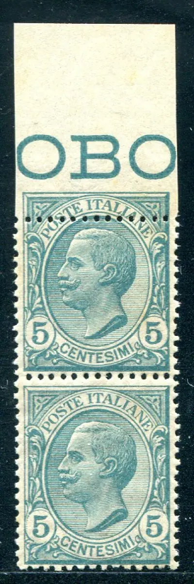Leoni Cent. 5 Paar Sortenverzahnung unten Vollgummi - Löwen Cent. 5 n. 81ha senkrechtes Drehmoment davon ein Exemplar mit stark nach unten verschobener oberer Verzahnung b. von f. - Selten - Kat. euro 150 Cod. 95/13