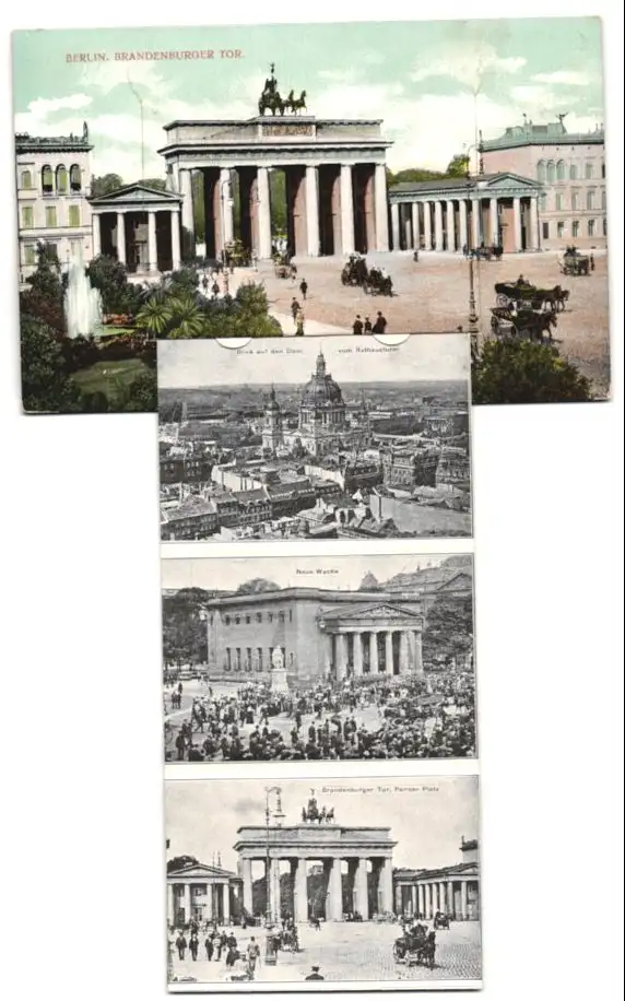 Leporello-AK Berlin, Brandenburger Tor, Unter den Linden, Blick auf den Dom vom Rathausturm, Königl. Schloss