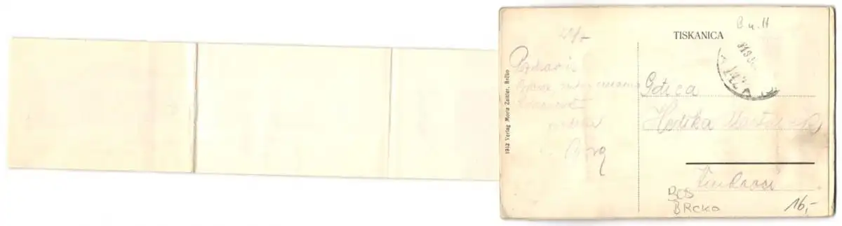 Leporello-AK Brcko, Rathaus, Neue Türkische Schule, Gemeinde-Spital