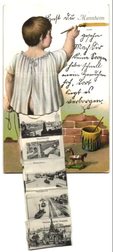 Leporello-AK Mannheim, Ansichten hinterm Gewand, Wasserturm, Friedrichsplatz, Parade-Platz