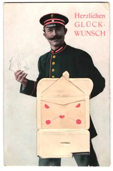 Leporello-AK Postbote mit Brief mit Geldschein, Herzlichen Glückwunsch