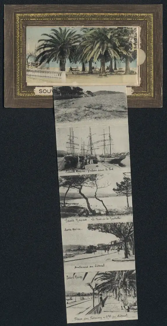 Leporello-AK Sainte-Maxime, La Plage, Grand Hotel, Jardin d`un Mas Provencal, Coucher de Soleil sur Suane