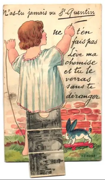 Leporello-AK St. Quentin, Ansichten der Stadt unterm Hemdchen