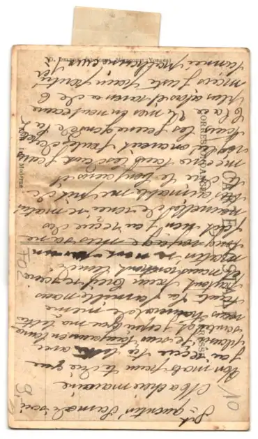 Personenbezogene Daten auf der Rückseite der Karte wurden durch blauen Textmarker unkenntlich gemacht. Die blauen Stellen sind auf die Vorderseite durchgeweicht und wirken sich negativ auf das Postkartenfoto aus