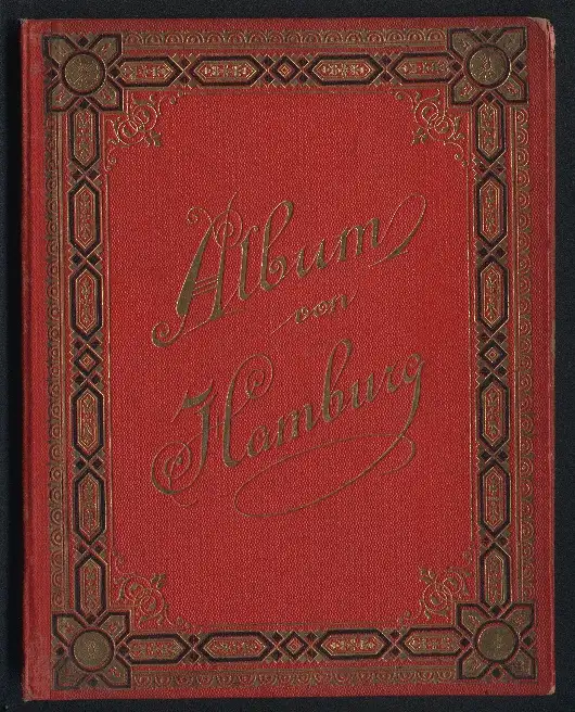 Leporello-Album 41 Lithographie-Ansichten Hamburg, Vierländerin, Riesen-Kran, Seewarte, Justizgebäude, Jungfernstieg