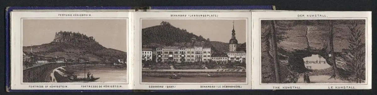 Leporello-Album Sächs. Schweiz mit 14 Lithographie-Ansichten, Gasthaus Grosser Winterberg, Schandau, Bastei, Amselfall