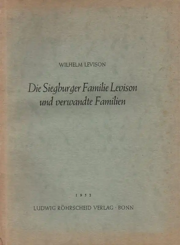 Titel: Die Siegburger Familie Levison und verwandte Familien. (Veröffentlichung des Instituts für Geschichtliche Landeskunde der Rheinlande an der Universität Bonn)