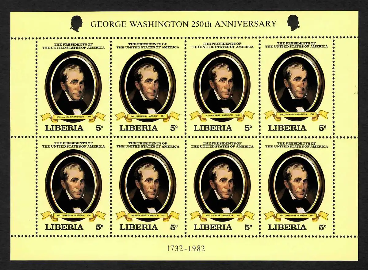 Liberia: Georg Washington 250th Anniversary: Block of Henry Harrison, mnh