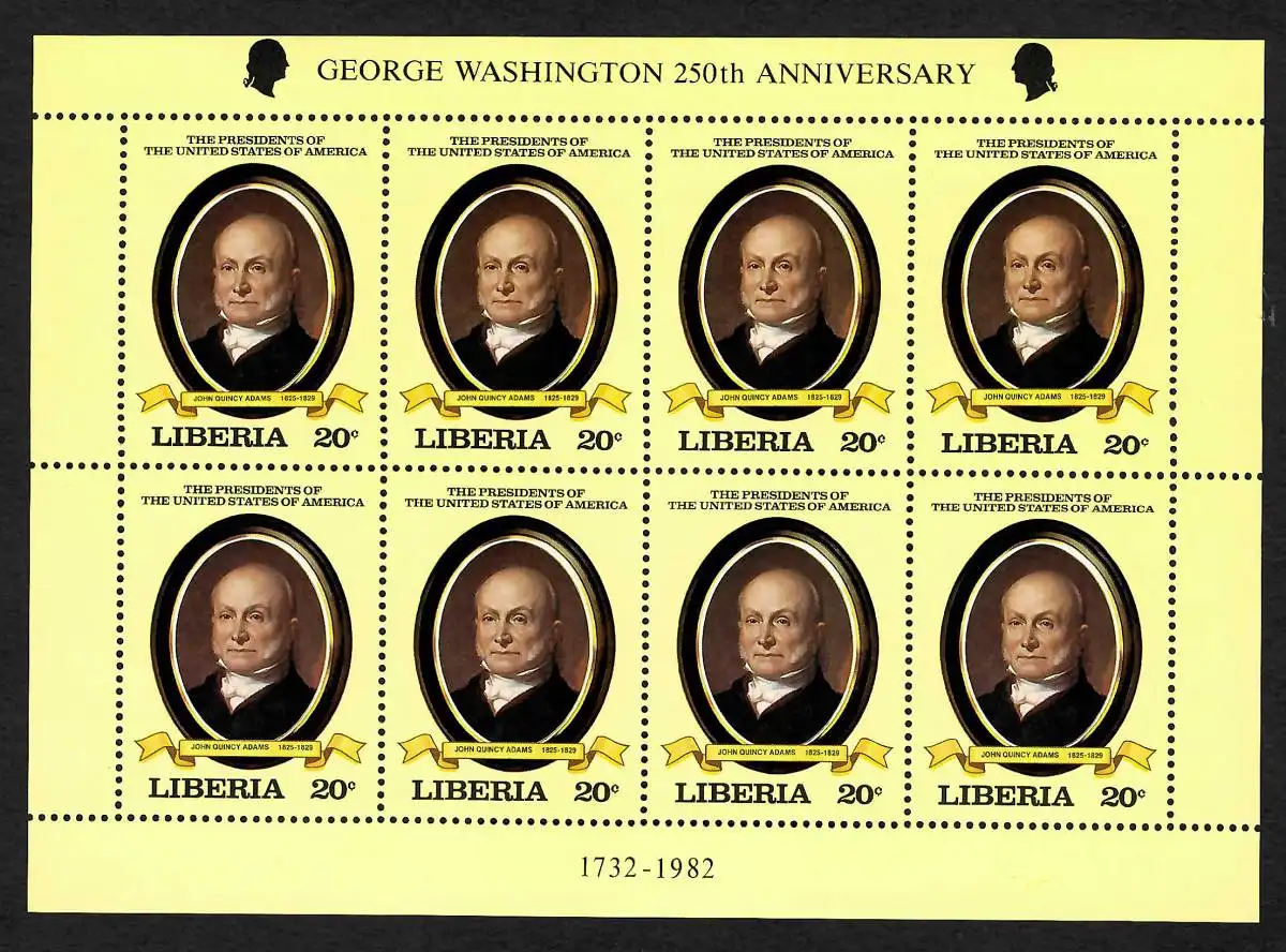 Liberia: Georg Washington 250th Anniversary: Block of John Qunicy Adams, mnh