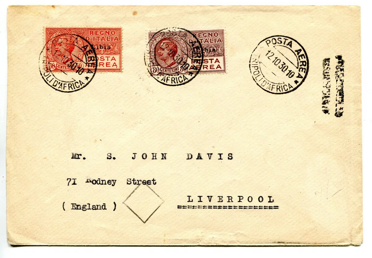 - Libyen - Luftpost Nr. 1/2 auf Airbrush von Tripolis nach Liverpool am 12.10.30 - Ungewöhnliche Nr. 1461/A