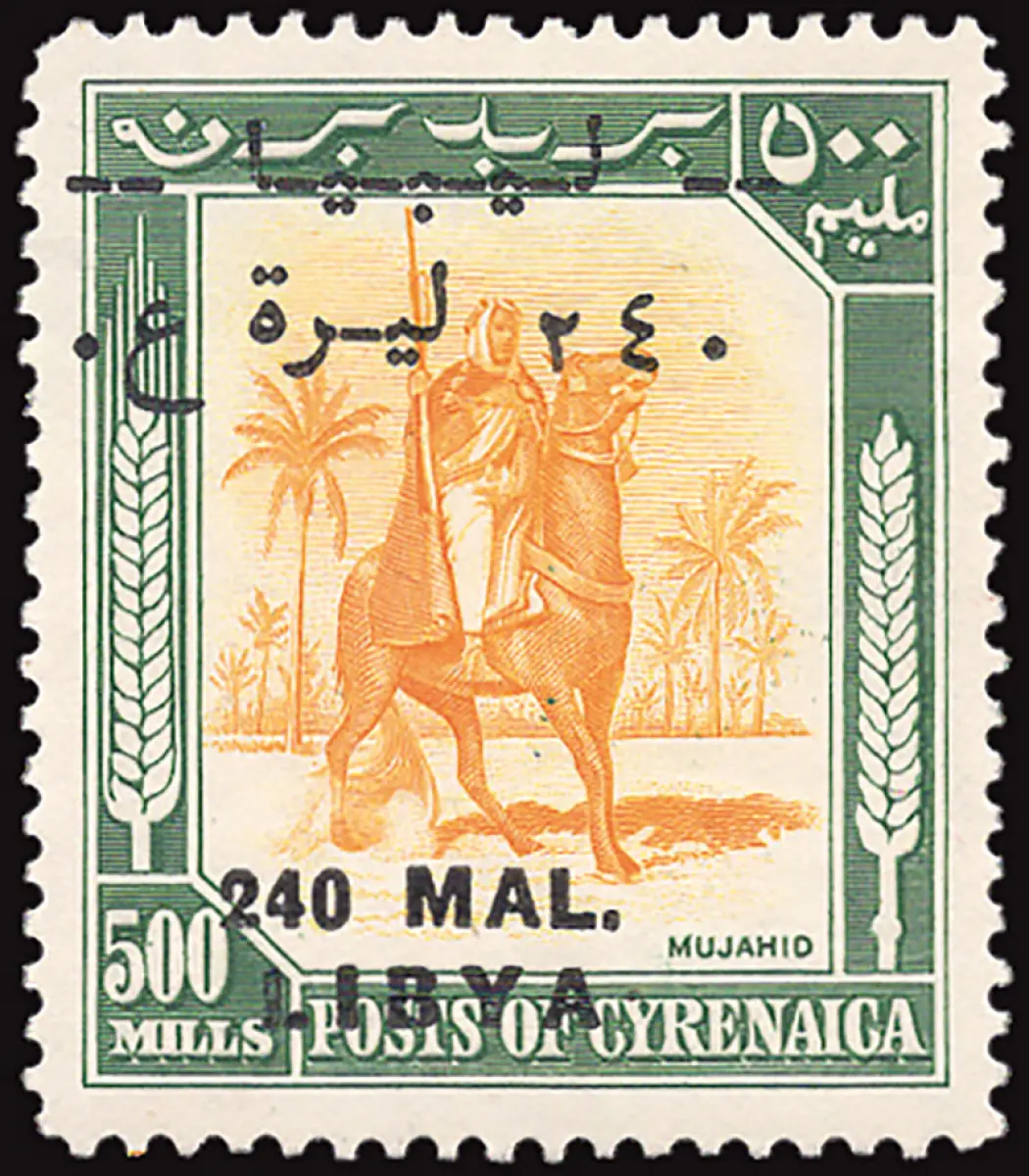 MNH - Vollgummi - - Libyen Unabhängiges Königreich - Ausgabe für Tripolitanien 240 MAL auf 500 m. Nr. 33ba stark nach links verschobener Aufdruck - Selten - Kat. euro 600 Cod.1068/182