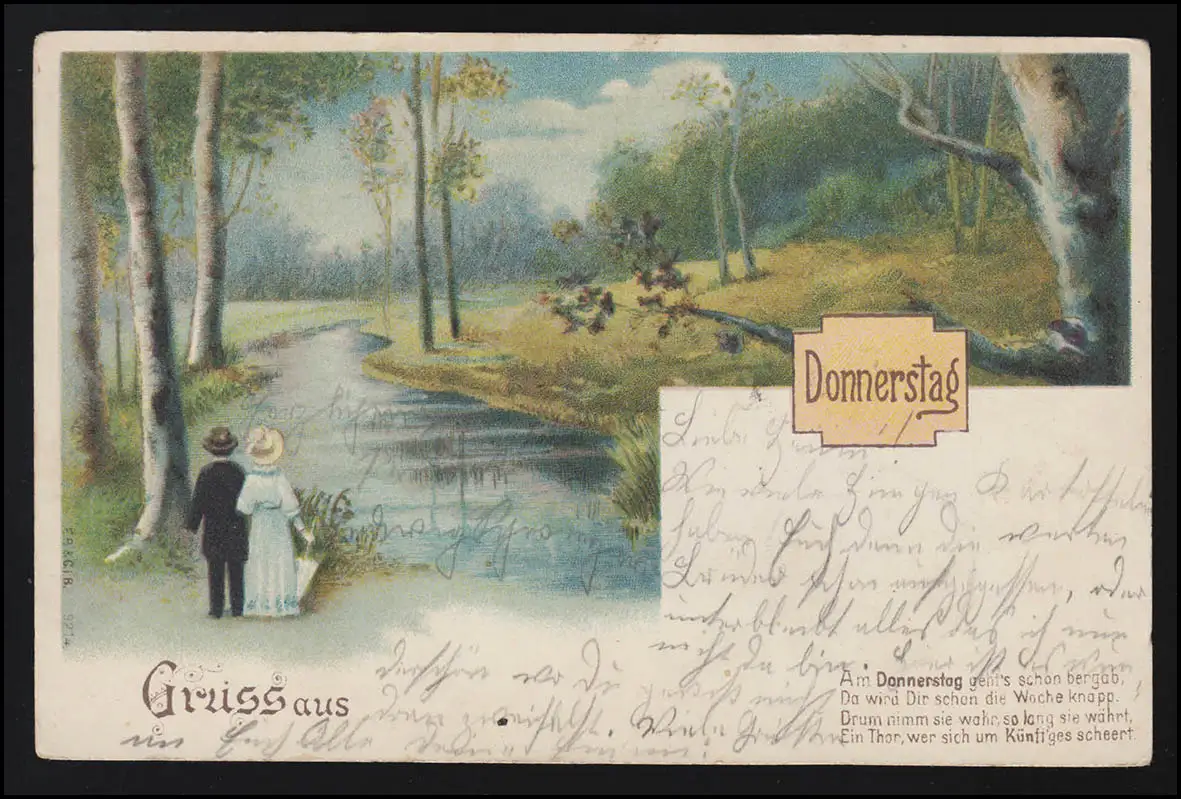 Liebe AK Trautes Paar Flussufer "Donnerstag" SCHÖPPENSTEDT- BURGDORF 19.7.1902