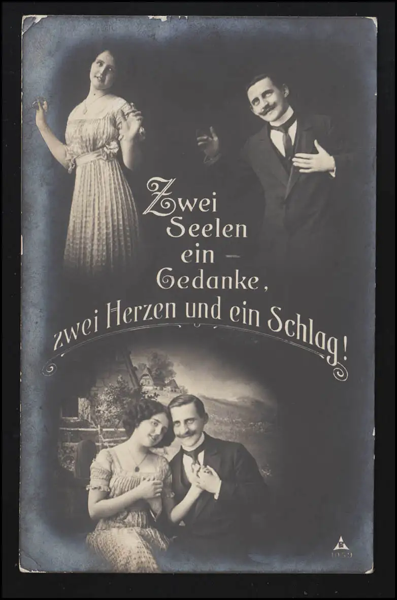 Liebe Foto AK "Zwei Seelen ein Gedanke" Nähe Ferne Paar, Feldpost 12.10.17