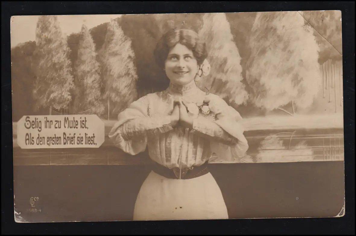 Liebes-AK Frau im Glück - Selig ihr zu Mute ist, als den ersten Brief sie liest