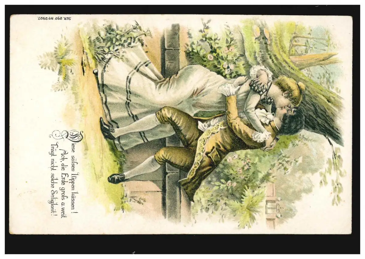 Liebes-AK Küssendes Paar: Gedicht: Diese süßen Lippen küssen! ungebraucht