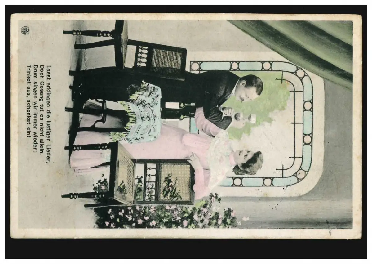 Liebes-AK Liebespaar: Zum Wohl! Weingläser Weinflaschen, 15.5.1917