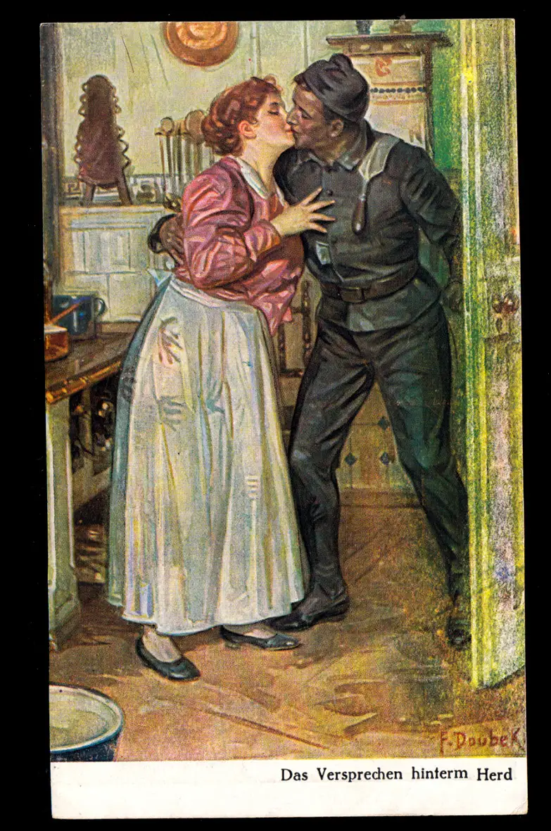 Liebes-AK: Prof. Doubek: Das Versprechen hinterm Herd, WIEN 29.7.1919