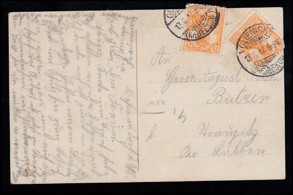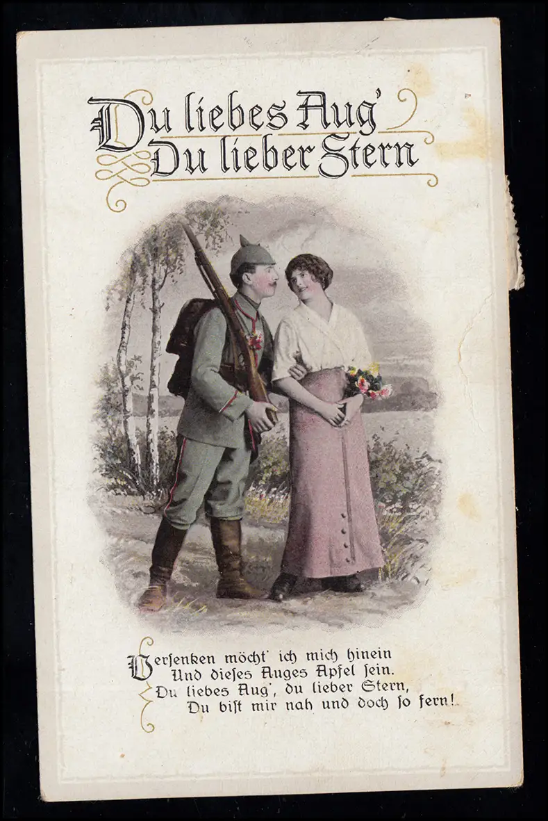 Liebes-AK Soldat mit Braut und Gedicht, GLIENICKE (Kr. BEESKOW) 13.6.1917