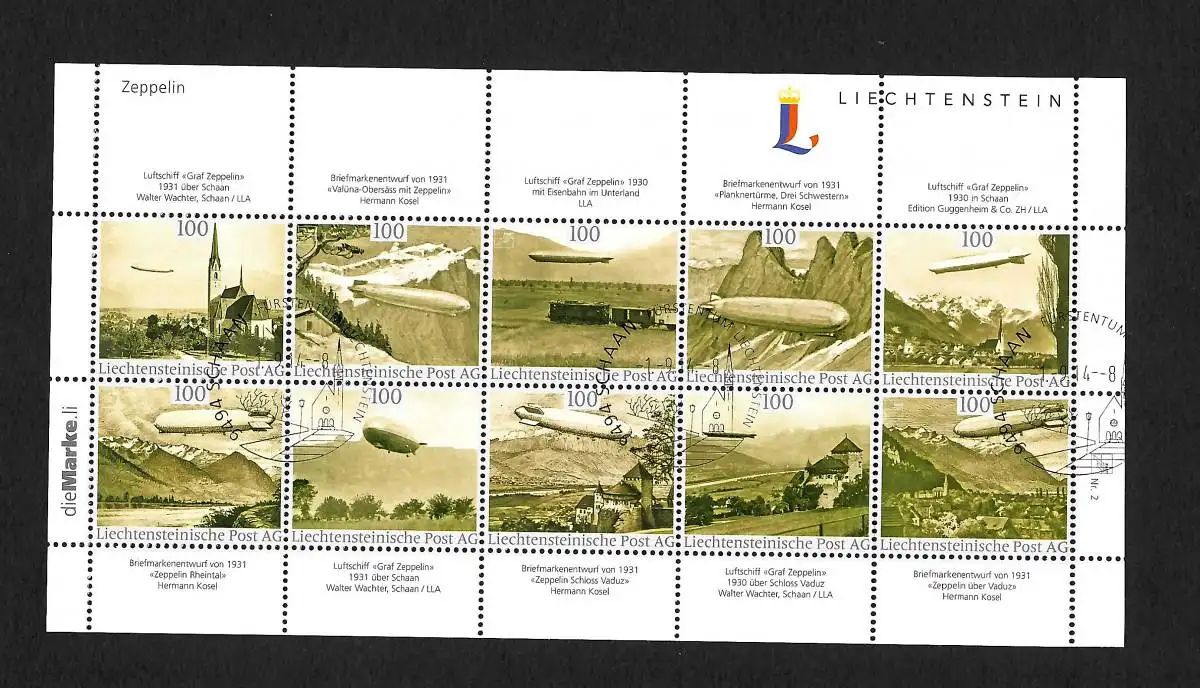 Liechtenstein 2014: Zeppelin Luftschiffe, gestempelt, Kollektionsbogen